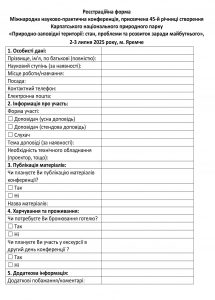 Для участі в конференції необхідно до 01 червня 2025 року надіслати реєстраційну форму та тексти матеріалів на електронну адресу оргкомітету: conferencecnnp45@gmail.com.