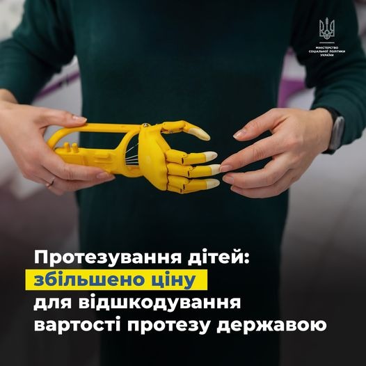 Щоби українські діти, які цього потребують, мали доступ до якісного протезування, уряд прирівняв граничну ціну компенсації протезів для дітей до ціни протезів для дорослих (https://bit.ly/4aAmgsQ).