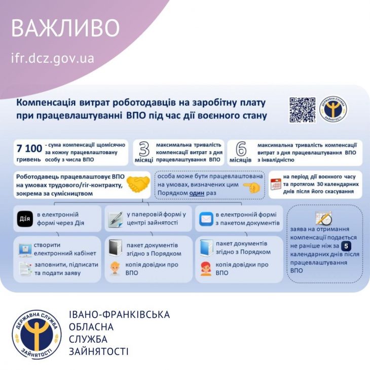 Зокрема, збільшено строки надання та розміри компенсації роботодавцям витрат на зарплату за працевлаштування внутрішньо переміщених осіб та внутрішньо переміщених осіб з інвалідністю.